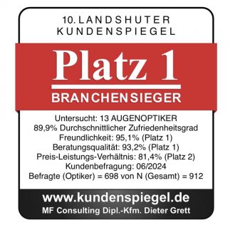 Bei den Umfragen des Landshuter Kundenspiegel, bei dem hunderte von Kunden aus Nah und Fern nach Ihrer Zufriedenheit im Allgemeinen und ihrer Zufriedenheit in Bezug auf Freundlichkeit, Beratungsqualität und Preis-/Leistung befragt wurden, wurden wir auch 2024 zum wiederholten Male zum Branchensieger gekührt.